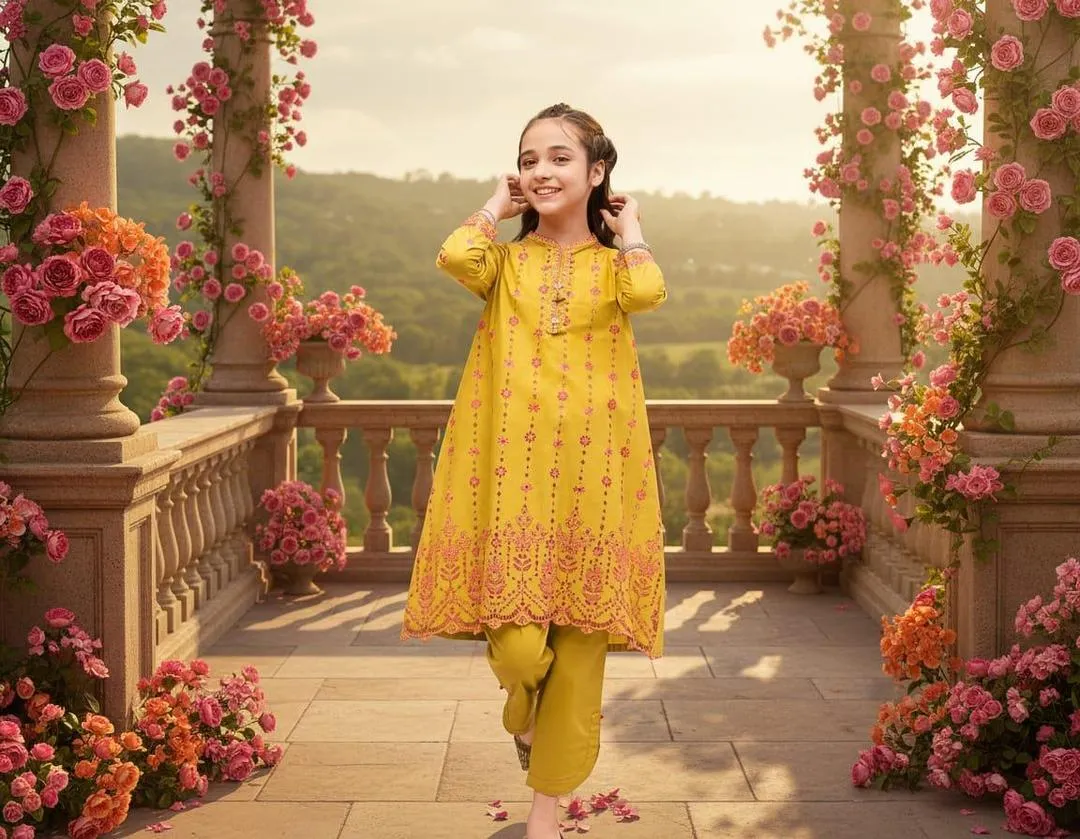 3 Pcs Girl’s Lawn Embroidered Unstitched Suit